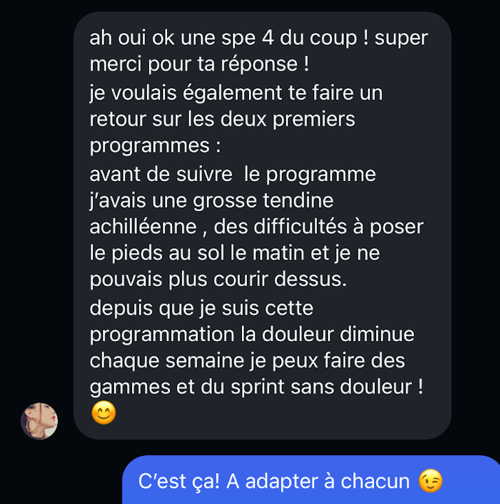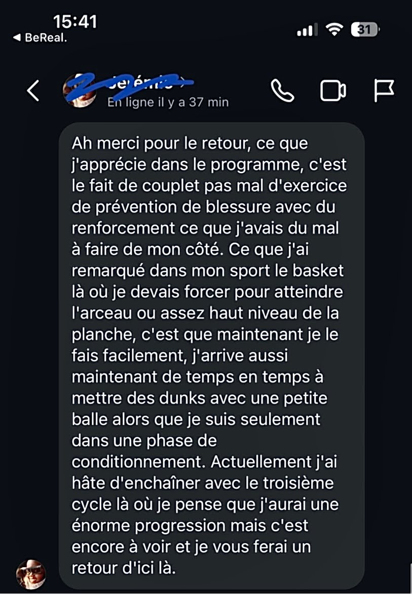 “ Je me sens super bien avec le programme [...] c’est pas du spécifique à mon sport et je trouve ça vraiment mieux.”