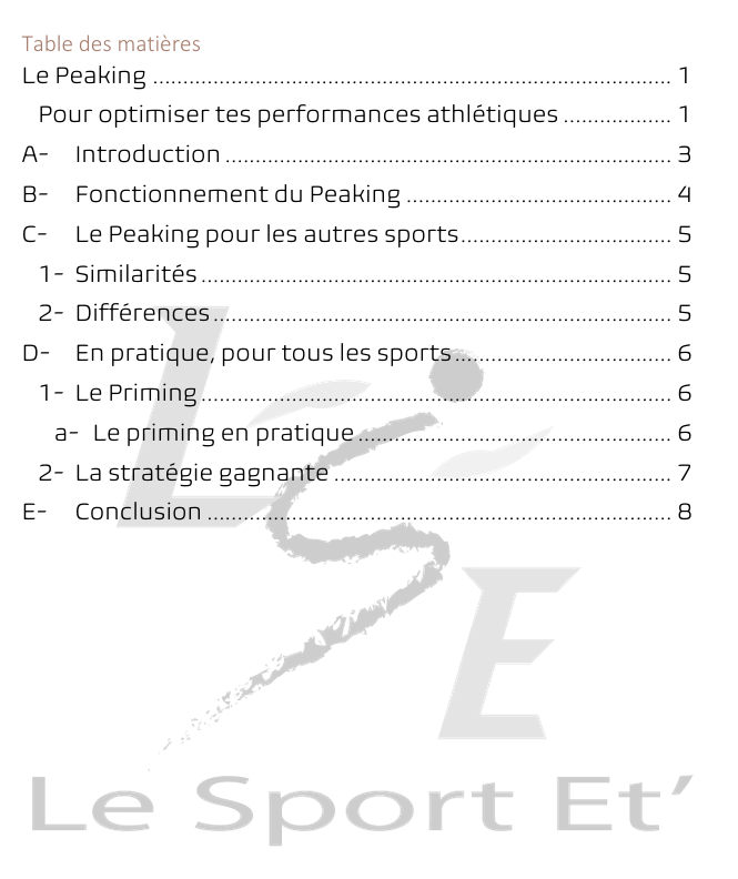 Si tu achètes un pack, tu recevras également gratuitement mon Ebook sur le peaking et le priming, qui sont des méthodes pour être à 200% le jour de ton match. En plus, tu recevras aussi un cycle d’1 mois complet de priming pour que tu aies un exemple d’entraînement.