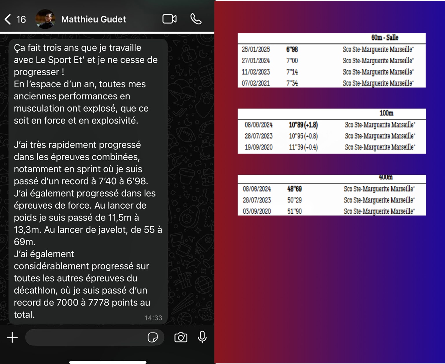 🏆Ou encore Mathieu, qui est passé d’athlète lambda à champion de France espoir du décathlon en 1 an (2023), depuis que je le suis personnellement. 🏆